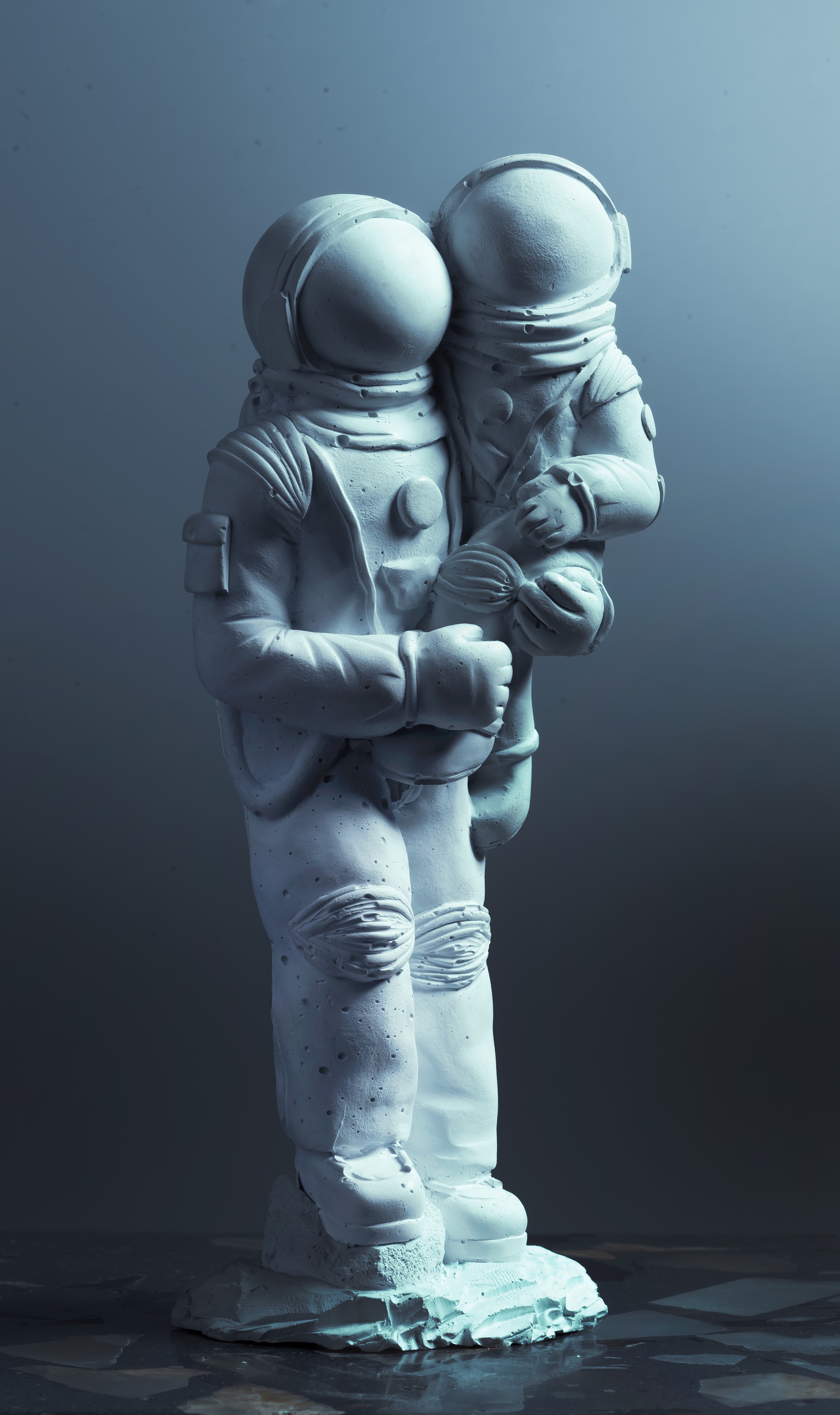 В безмолвной тишине космического простора, где звезды мерцают как мечты, автор создал уникальный образ бетонного искусства — космонавт-родитель, бережно держащий на руках своего ребенка-космонавта. Эта скульптура, по задумке автора, является символом эволюции человечества, воплощая надежду на постоянный рост и развитие, которые становятся возможны и осязаемы, когда мы творим и бережно поддерживаем плоды своего творения, передавая накопленный опыт и знания.